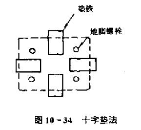 2)十字墊鐵(圖10-34):當設備底座小、地腳螺栓間距近時用這種方法。