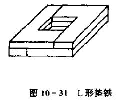 4)L型墊鐵:當以上幾種墊鐵不能放置時用,如剪斷機,因底腳與墊板接觸面很小,所以采用L型墊鐵其中較好(圖10-31)。其中留出之孔,就是地腳螺栓的位置。